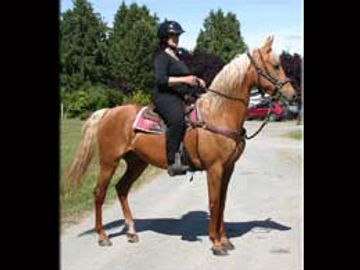 A superb saddlehorse with a great mouth, no bad habits, easy to manage, great ground manners, parks, long lines, lounges, trailers, very nice in the arena and on trails. Eager to learn, capable of any discipline.