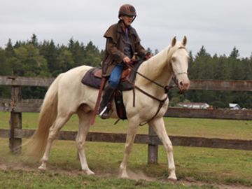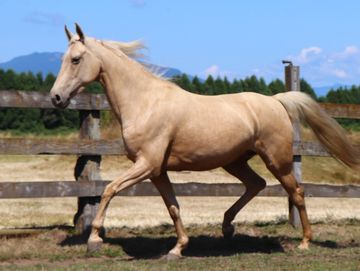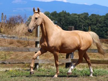 This Golden Palomino is amazing, he is well mannered, easy to handle, Lounges, Long Lines, Parks out, Huge trot, an eye catching flowing motion, power house hocks, long Graceful neck, superior conformation and oh so willing to please.